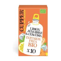 • INFUSION FRIA CON LIMON JENGIBRE Y CURCUMA ECO 10 BOLSAS