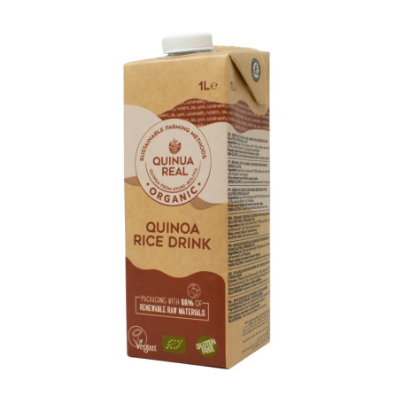 BEBIDA QUINOA REAL ARROZ 1 L Bebida de Quinoa DELICIOSA, con gran aroma. Con azúcar te recordará a la horchata. La tomaban desde los Incas, hasta en la actualidad en la Estación Espacial. Y tú a que esperas a beberla? Esta bebida vegetal sacia rápidamente la sed.