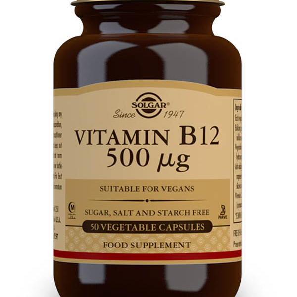 VITAMINA B12 VEGANA de Solgar – 500mcg. de CIANOCOBALAMINA. Cada bote contiene 50 capsulas.