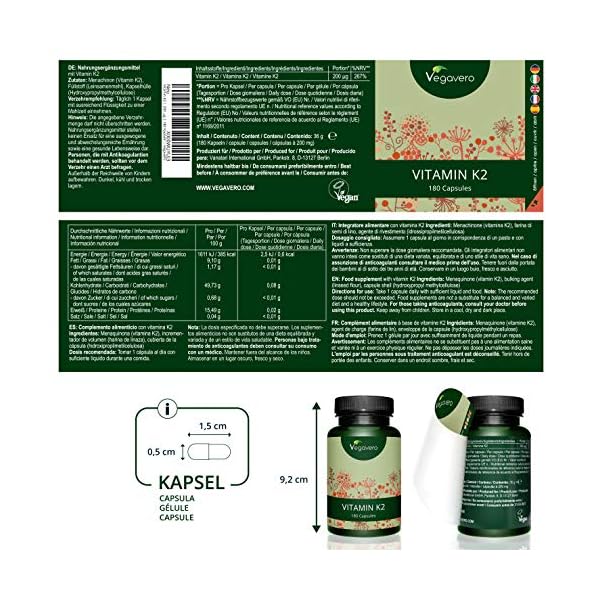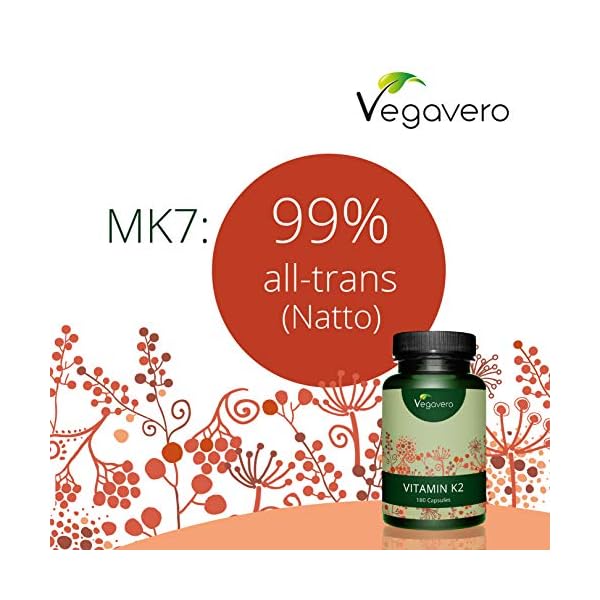 Vitamina K2 MK7 – Se vende en bote de 180 cápsulas ✅Ayuda a tus huesos y articulaciones – Vitamina totalmente vegana y natural. Extraida del Natto con la garantia del laboratorio alemán Vegavero