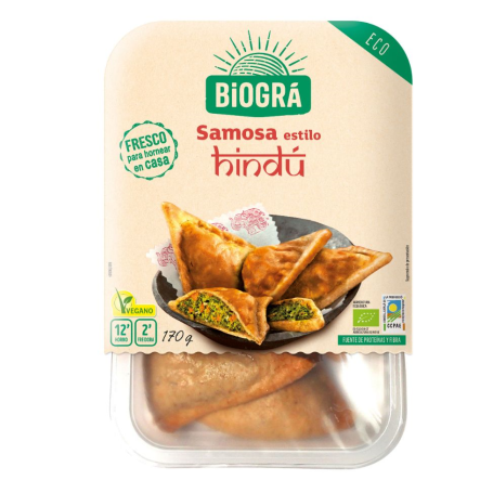 Samosas Vegetales al estilo Hindú – En envase de 170 Gr con la calidad BIogrà.