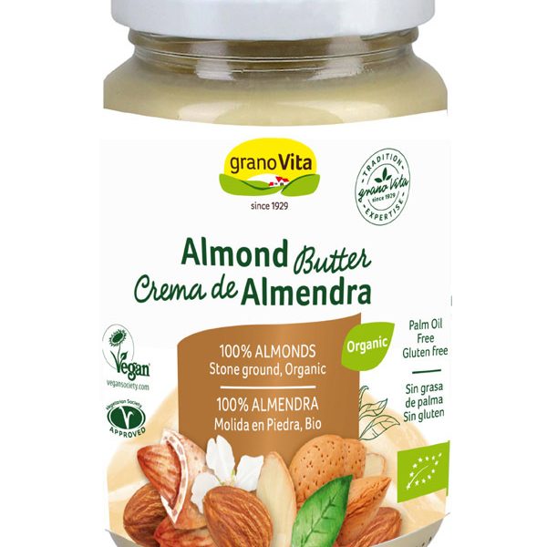 Nueva crema para untar Granovita 100% natural de almendras dulces de la variedad California, molidas en molino de piedra.