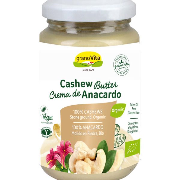 Deliciosa crema de anacardo para untar Granovita, se fabrica en molino de piedra con anacardos ecológicos cuidadosamente seleccionados. Este método mantiene los nurientes y sabores naturales de los frutos secos aportando una textura cremosa.
