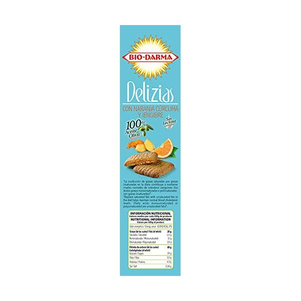 Paquete de 120 Gr. de Galletas Delizias con sabor a cúrcuma, naranja y jengibre.