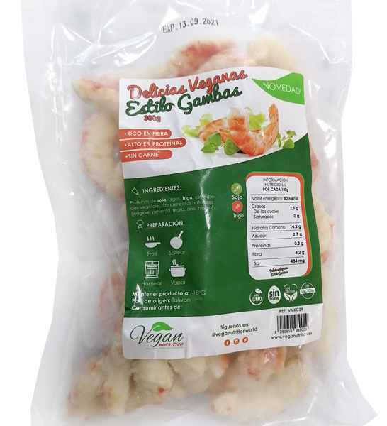 Paquete de Gambas Veganas. 300 gramos de auténticas Gambas Veggie.