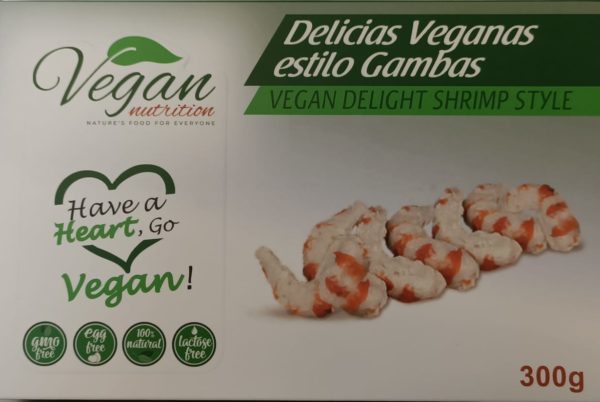 Gambas Veganizadas Vegan Nutrition a base de proteína de trigo. Con extracto de alga. El extracto de alga le da la apariencia y el sabor a gamba real. No hay nada más real que comerte un plato de gambas sin matar a tus amigas marinas.