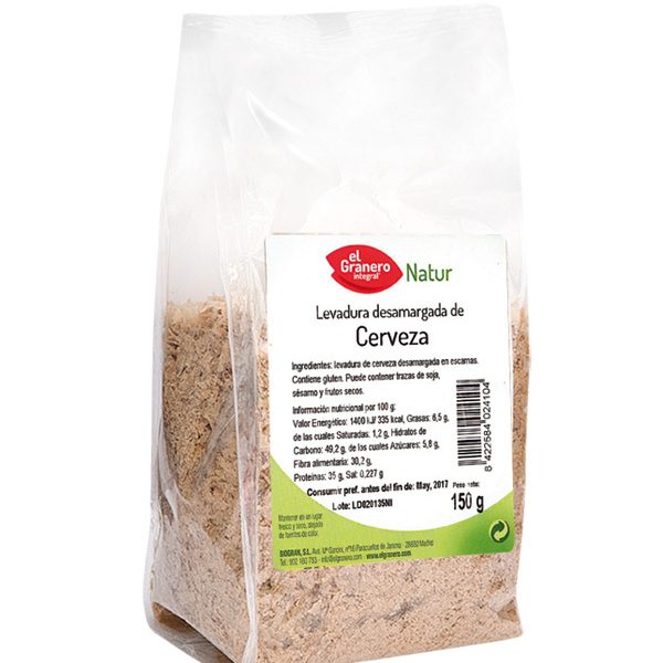 levadura de cerveza desamargada en escamas. Contiene gluten. Puede contener trazas de soja, sésamo, frutos secos y sulfitos.