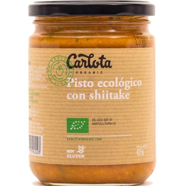 Pisto cocinado al estilo tradiconal con verduras frescas de la huerta, aceite de oliva virgen extra y seta shiitake.El pisto Carlota organic es ideal como base de platos más elaborados, como guarnición o como relleno para tus pizzas y empanadas. La seta shiitake le confiere un sabor intenso y le aporta propiedades y beneficios a nuestro organismo.