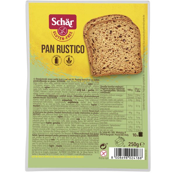 Agua , almidón de maíz , masa madre (harina de arroz, agua) 14% , harina de arroz , fibras vegetales (psyllium, cítricos) , copos de soja 1,9% , semillas de lino 1,8% , espesante: hidroxipropilmetilcelulosa ; aceite de girasol , proteína de soja , levadura , extracto de manzana , copos de mijo 1% , sal , harina de sorgo 0,8% , azúcar , aroma natural . SIN LACTOSA (lactosa<0.007g/100g)
