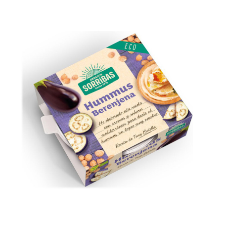 Garbanzos cocidos*(50%), aceite de girasol*, berenjena asada*(11.5%), tahin*, zumo de limón*, aceite de oliva virgen extra*, sal marina, ajo*, especias*.