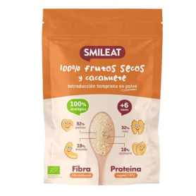 Mezcla de diferentes frutos secos ecológicos (avellana, anacardo y nuez) y cacahuetes, molida en polvo para su fácil consumo y evitar así el riesgo de atragantamiento.