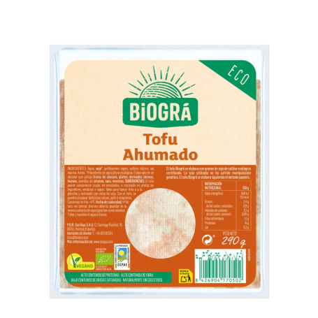 El tofu de Biográ se elabora con granos de soja de cultivo ecológico certificado y es una de las alternativas a la carne más saludables. La soja utilizada no ha sufrido manipulación genética. El tofu ahumado Biográ se elabora siguiendo el método tradicional Japonés AHUMADO CON MADERA DE HAYA.